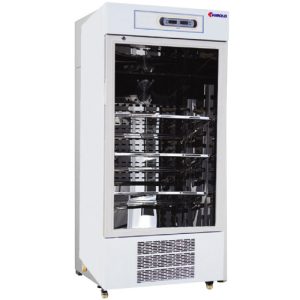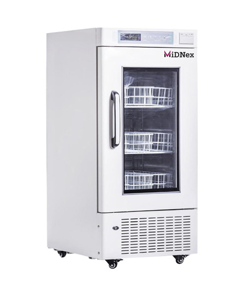 Interior consists of two drawers of aluminum on telescopic runners with stops. Stacking height: 23 cm. Capacity per drawer app. 25 blood bags, each 500 ml size.