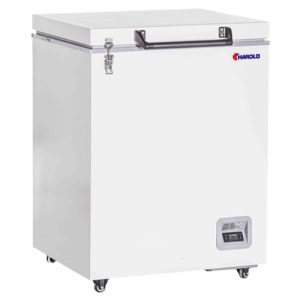 Blood Bank Refrigerator HML-B0062 is a single door 108 L microprocessor controlled compact refrigerator with an automated self-close design. Two adjustable shelves with transparent inner doors ensures stable storage temperatures during a door opening. Exclusive temperature box for determining temperature of blood in storage. Forced air cooling system helps maintaining temperature uniformity.
